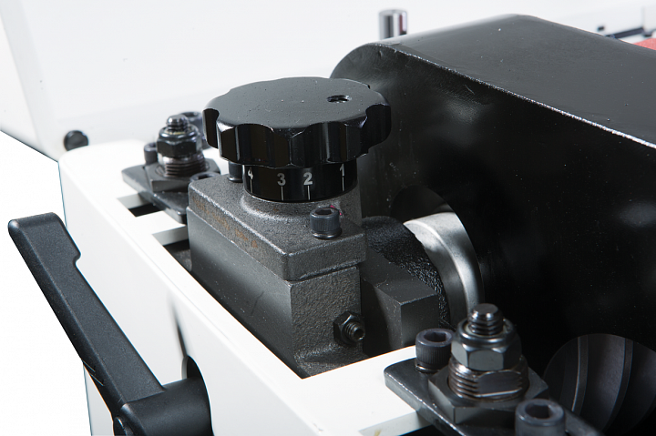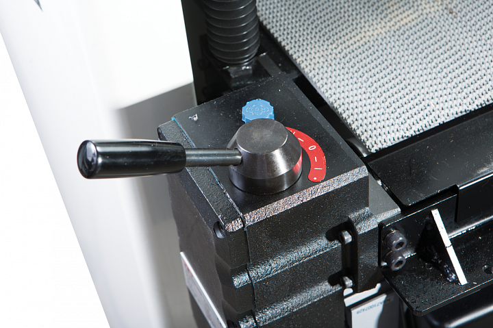 Конструкция с двумя валами позволяет использовать абразивы с разной зернистостью, то есть за один проход производить грубую и финишную шлифовку. Для достижения наилучшего результата предусмотрена точная регулировка положения выходного вала относительно приёмного, высоту которого подбирают в зависимости от зернистости абразива. Регулировка по высоте шлифовки производится независимо за счет опускания транспортёрного стола. Он размещен на четырёх опорах и регулируется с точностью до 0,2 мм по всей ширине. На практике, разброс толщины после шлифовки на хорошо настроенном DDS-237 значительно меньше. При такой точности станки способны снимать за один проход до 1,5 мм по всей ширине, необходимо лишь правильно подобрать абразив и скорость подачи (2 или 3 м/мин).