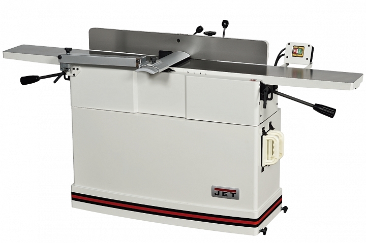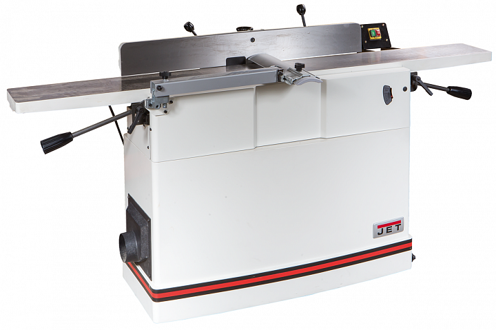JJ-866 новый фуговальный станок Jet профессионального класса с шириной строгания 200 мм, оборудован длинными массивными чугунными столами. Может в качестве опции комплектоваться строгальным валом helical, который незаменим при работе с твердыми породами, по древесине с сучками и просто при интенсивной эксплуатации.