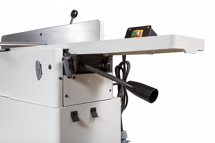 Станок укомплектован массивным чугунным фуговальным упором с регулировочным механизмом червячного типа. Он обеспечивает точную и жесткую установку угла наклона в диапазоне от прямого положения до 45° влево или вправо.