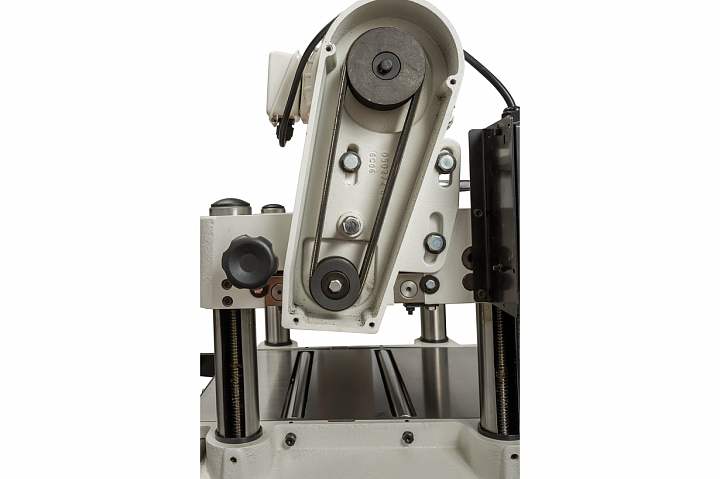 Jet JWP-16 OS — профессиональный рейсмусовый станок с массивной жёсткой конструкцией, собранной в основном из чугунных деталей. Имеет классический открытый дизайн с четырьмя цилиндрическими опорами моторного блока. По назначению он относится к разряду универсальных, поскольку способен одинаково хорошо справляться и с чистовой, и с грубой работой. Так, при протяжке сложных (непросушенных, без нормальной базовой плоскости и т.п.) заготовок достоинством являются металлические валы подачи. Первый по ходу вал движения выполнен рифлёным, второй – гладким. Для снижения трения о стол в него встроены регулируемые ролики. При работе на всю ширину мощности мотора (даже однофазного) хватает для снятия полутора-двух миллиметров материала за один проход. Две передачи в редукторе позволяют менять скорость подачи. Регулировка высоты производится маховиком (1,5 мм за оборот), для фиксации выбранного положения предусмотрен винтовой зажим.