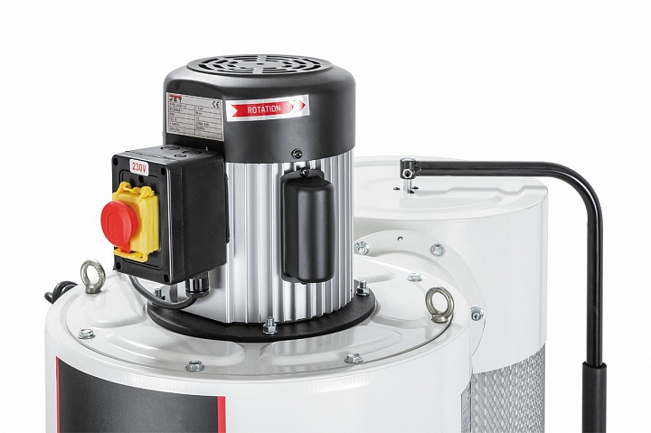 Основной накопитель в виде металлической ёмкости установлен на колеса, подкатывается под аппарат и герметично накрывается крышкой с двумя рычажными прижимами. Такая конструкция позволяет проводить очистку быстро и без лишних физических усилий. Таким образом, Jet JCDC-1.5 одинаково подходит как для обслуживания строгального оборудования, дающего много крупного мусора, так и для шлифовального, мелкая взвесь от которого забивает фильтры обычных пылеотсосов.