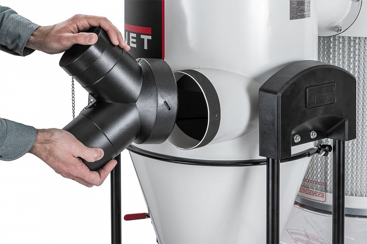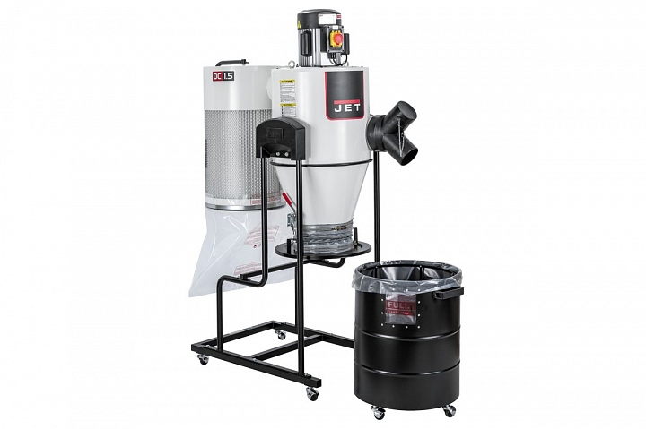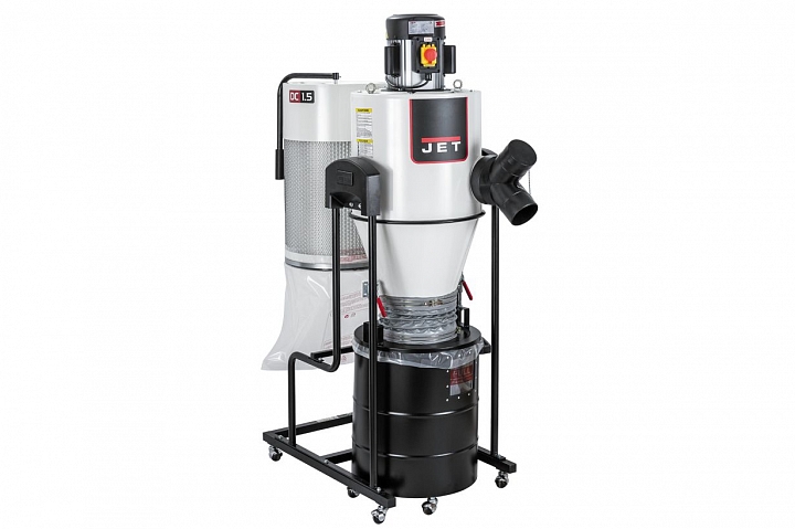 Jet JCDC-1.5 — сравнительно компактная вытяжная установка типа «циклон», хорошо подходящая для работы в небольшой мастерской. Достоинства, присущие аппаратам этого типа, позволяют организовать эффективное удаление пыли наравне с более мощными и крупными моделями обычной конструкции.