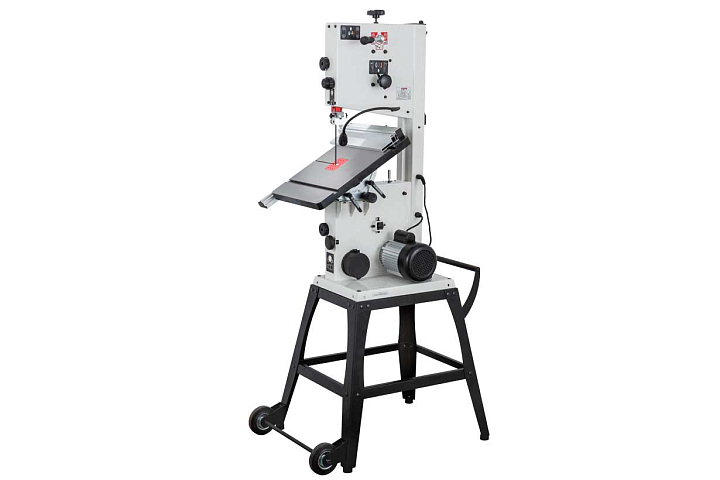JWBS-12SL – сравнительно крупная и мощная ленточная пила для любительской работы с заготовками высотой до 170 мм. Модель оборудована большим чугунным столом и двухскоростной ременной передачей: высшая ступень обеспечивает высокую производительность по неплотным породам, низшая для твердой древесины, склонной к образованию прижогов.