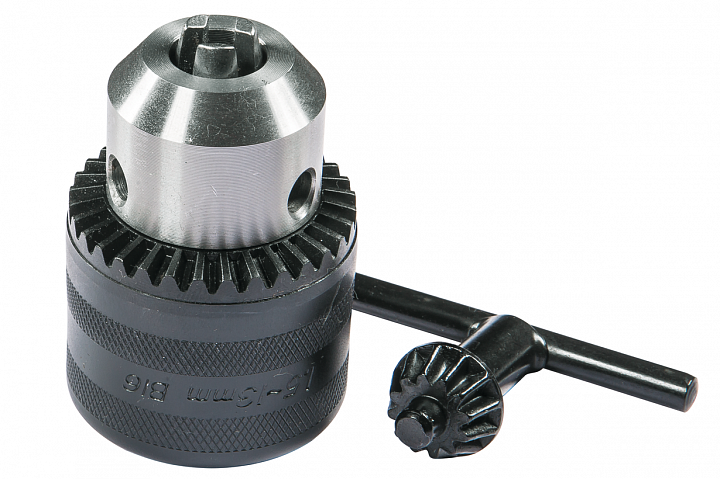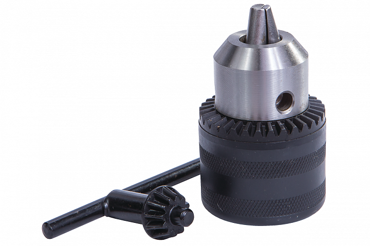 Сверлильный патрон 1,5-13 мм представляет собой прецизионную прижимную оснастку для работы на токарном оборудовании компании, выпускаемым компанией JET. Конструкция патрона имеет три самоцентрирующихся кулачка, обеспечивающих прочное и надежное крепление режущего инструмента с конической хвостовой частью. Патрон рассчитан на установку и зажим режущих инструментов с диаметром хвостовиков 1,5-13 мм. В комплекте к патрону идет ключ, с помощью которого осуществляется прижимное действие кулачков. Оснастка устанавливается на специальную оправку в заднюю бабку токарного станка.