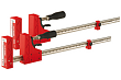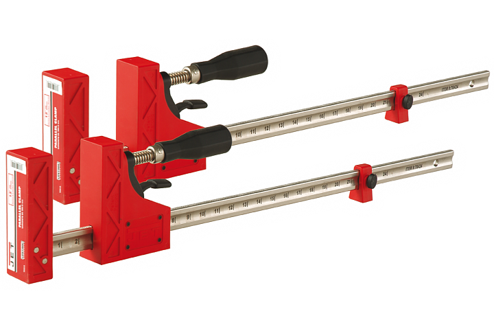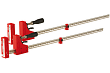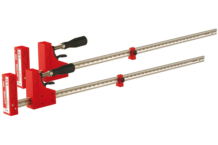 Прочные и удобные в эксплуатации струбцины, оптимальные для работ, связанных со сборкой на клей конструкций из дерева. За счет наличия пластиковых корпусов не повреждают и не пачкают деревянные поверхности. Выполнены разборными, что позволяет переустановить подвижную часть и использовать струбцину на разжим. Оборудованы храповым механизмом с язычком разблокировки, что упрощает подгонку захвата под нужный размер. Металлический несущий профиль имеет симметричные насечки для работы храпового механизма и миллиметровую разметку для измерения расстояний. Пластиковые детали из качественного стеклоармированного полимера (композита) с поверхностью стойкой к налипанию столярного клея.