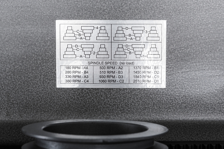 | Частота вращения шпинделя, об/мин | 180, 280, 330, 380, 500, 510, 930, 1060, 1370, 1450, 1840, 2510 |
